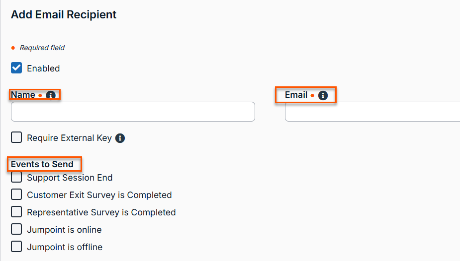 | Email Recipient | Configure up to 10 external email addresses that will be notified when certain session events occur. |