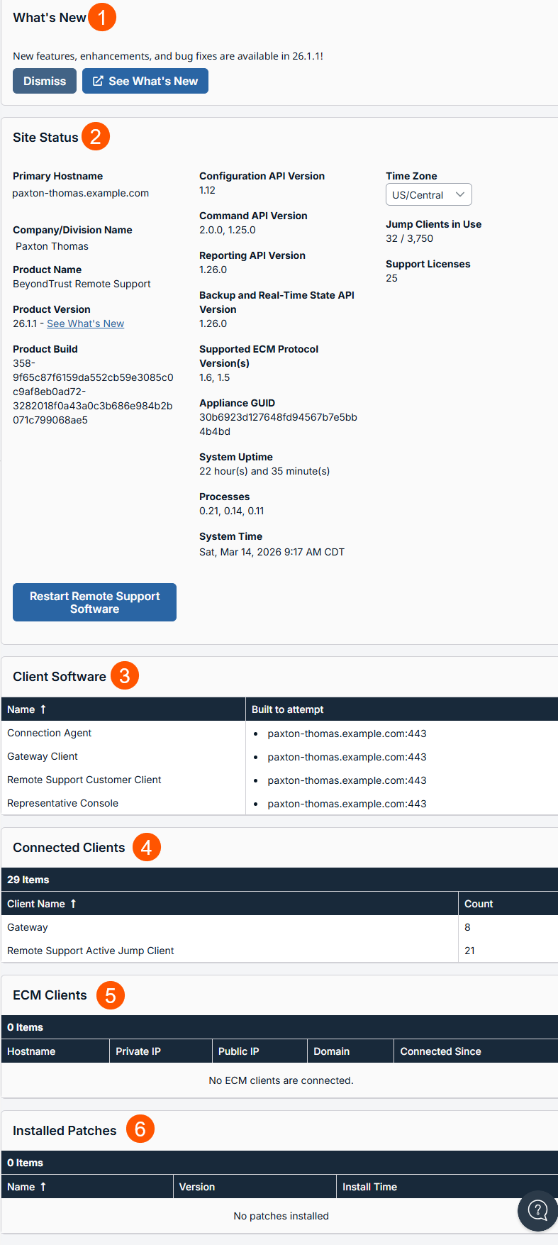 - Support Licenses: The total number of support licenses for your appliance. Contact BeyondTrust Sales to add additional licenses.