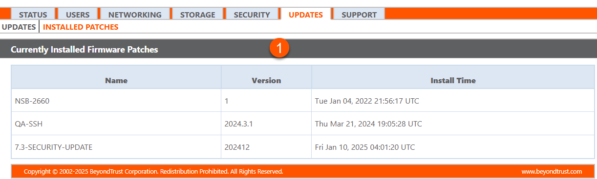 - Installed Patches list columns: A list of Installed firmware patches columns.