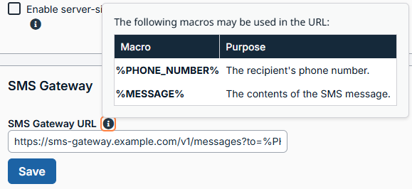 Enter a secure SMS gateway URL from your ISP or third-party gateway provider.