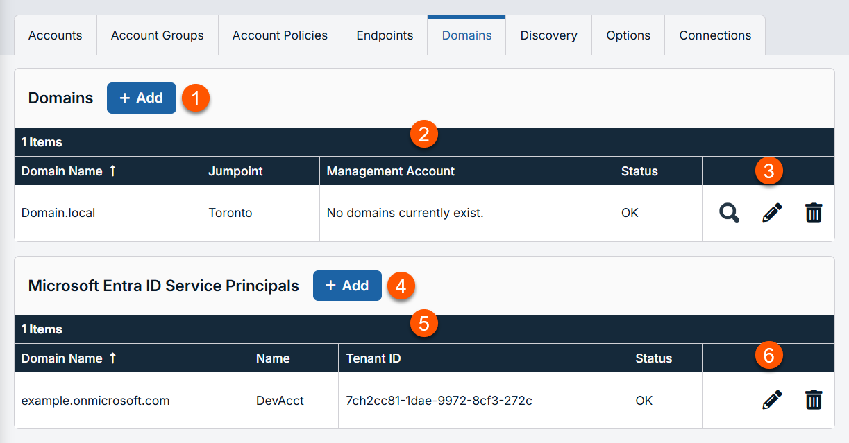 - Management Account: This account is used to connect and perform the discovery of accounts and endpoints of the specified domain.