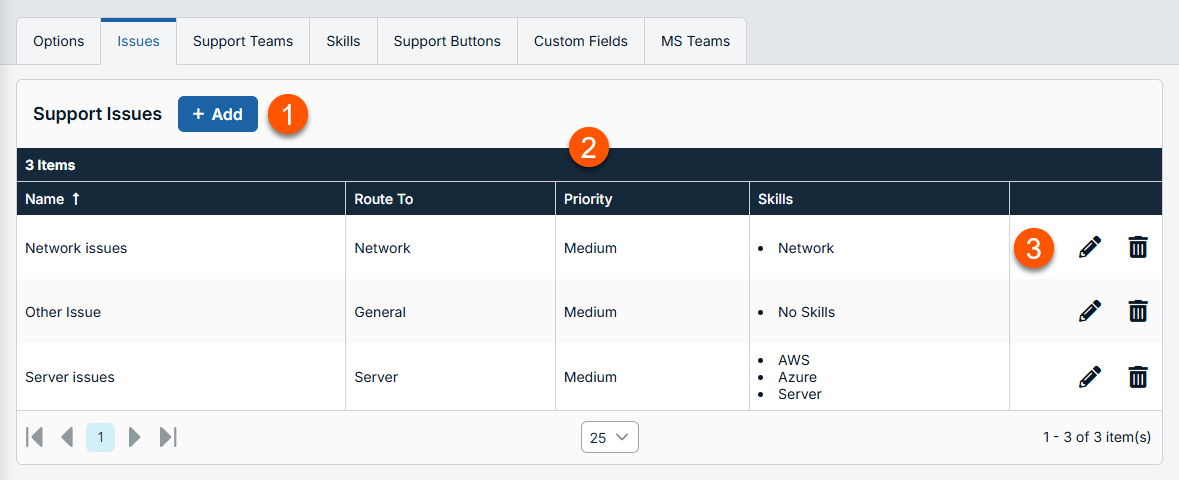 - You must have at least one Support Team before you create support issues.