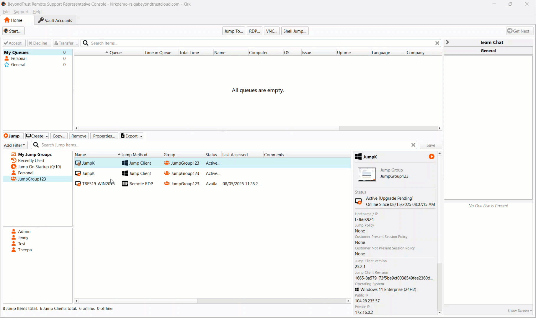 The Jump Clients page opens and displays by default. -