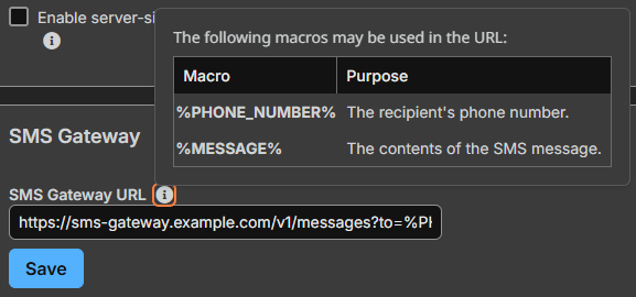 Enter a secure SMS gateway URL from your ISP or third-party gateway provider.