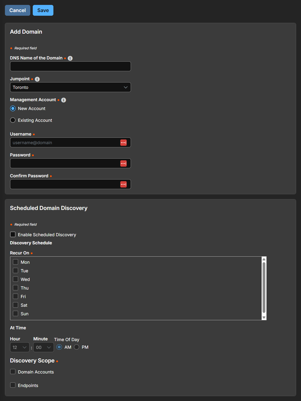 - In the Jumpoint field, view the Jumpoint used to discover accounts and endpoints on the domain.