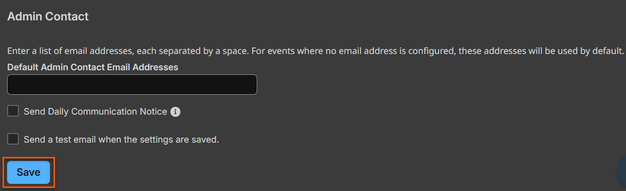 In addition to the test email and daily communication notices that can be configured above, emails are sent for the following events: