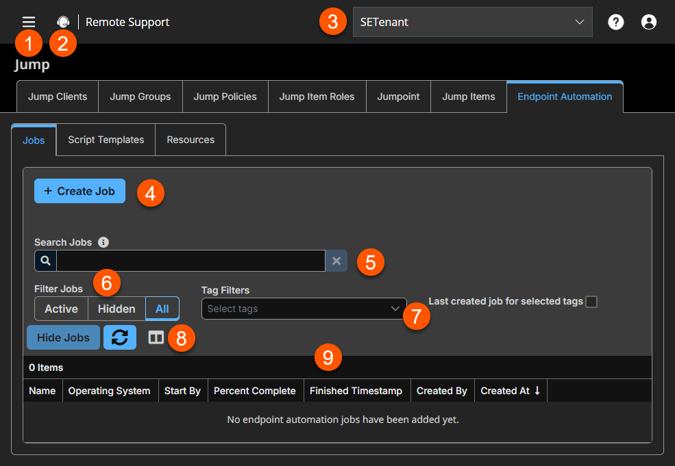 The Jump page opens and the Jump Clients tab displays by default. - Click the Endpoint Automation tab.