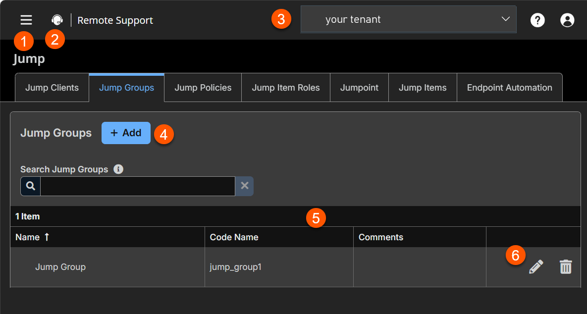 The Jump page opens and the Jump Clients tab displays by default. - Click the Jump Groups tab.