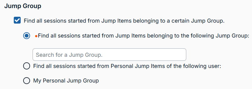 - Jump Group: Filter sessions that belong to certain Jump Groups.
