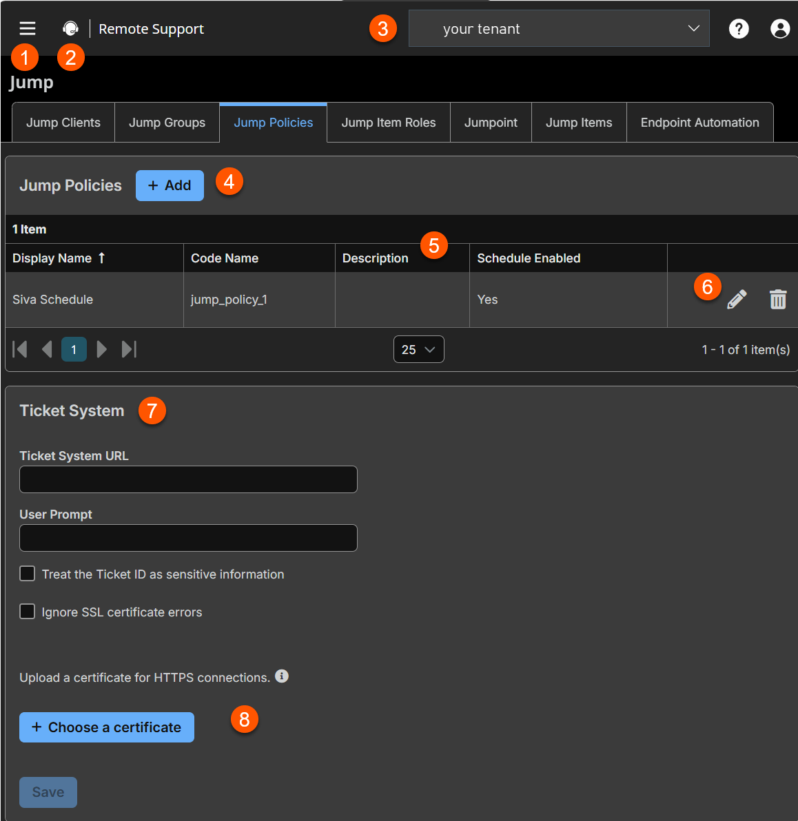 The Jump Clients page opens and displays by default. - At the top of the page, click Jump Policies.