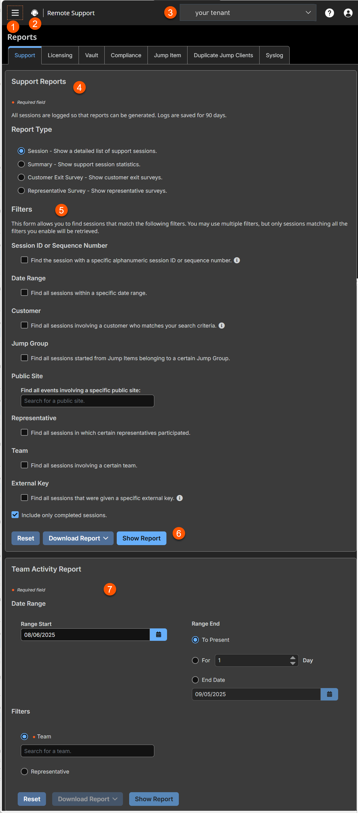 All items listed within Remote Support reports are ordered from newest to oldest.