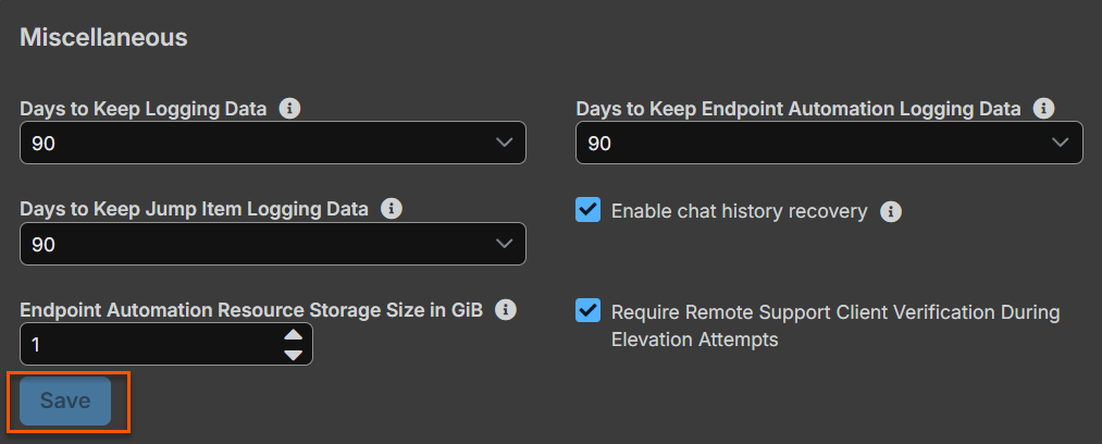 Select the Jumpoint to use for external Jump Item sessions from the dropdown list of available Jumpoints, or leave the default selection of Automatically Selected by External Jump Item Network ID to allow Remote Support to determine which Jumpoint handles the session.