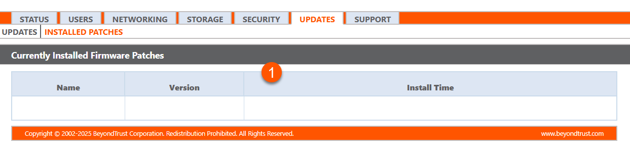 - Installed Patches list columns: A list of Installed firmware patches columns.